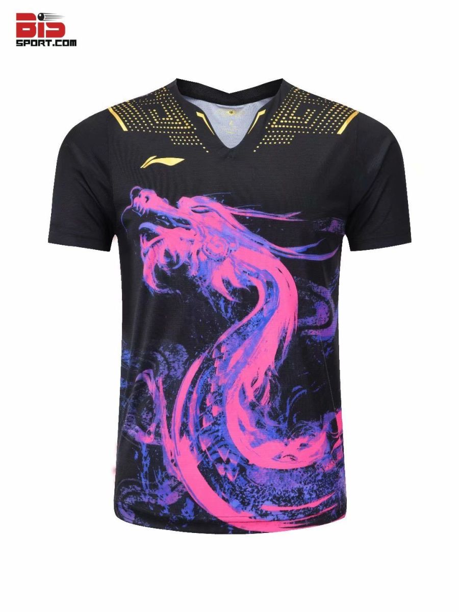 ✅Áo Bóng Bàn Cầu Lông Li-ning Ma Long 6078A Cao Cấp (Đen Họa Tiết Rồng Tím) - Cực Chất✅