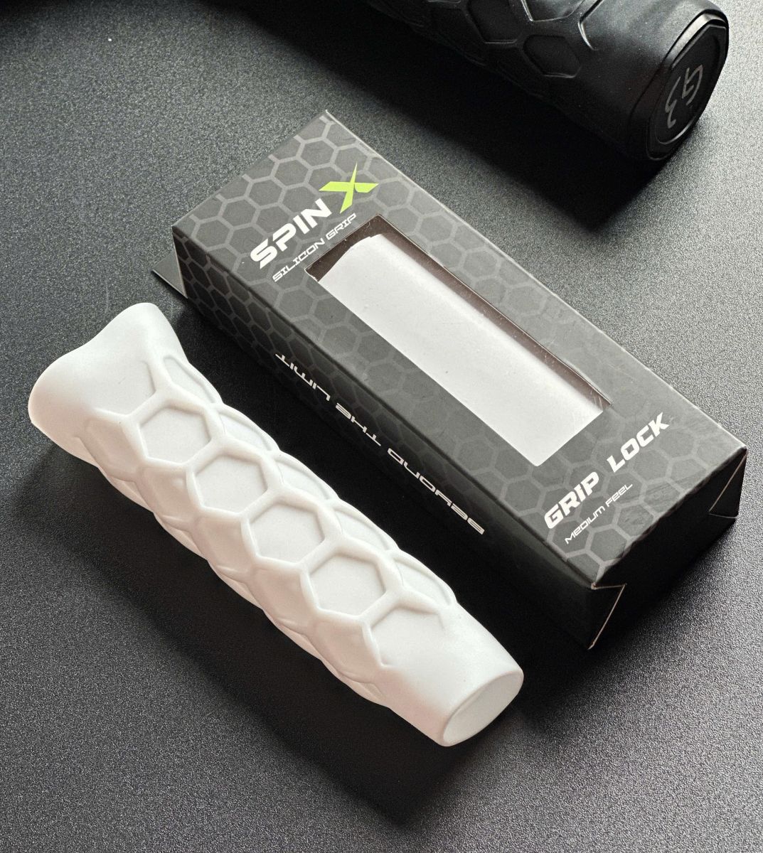 Bọc cán SpinX có cấu trúc vân nổi dạng lục giác lõm nhẹ, ôm sát theo đường cong tự nhiên của bàn tay.