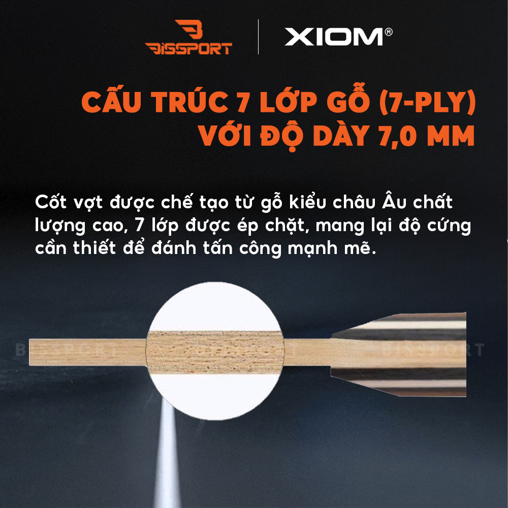 XIOM EXTREME S sử dụng 5 lớp gỗ tiêu chuẩn, được gia công tỉ mỉ để giữ độ mềm tự nhiên và độ rung nhẹ giúp người chơi cảm nhận bóng tốt hơn.