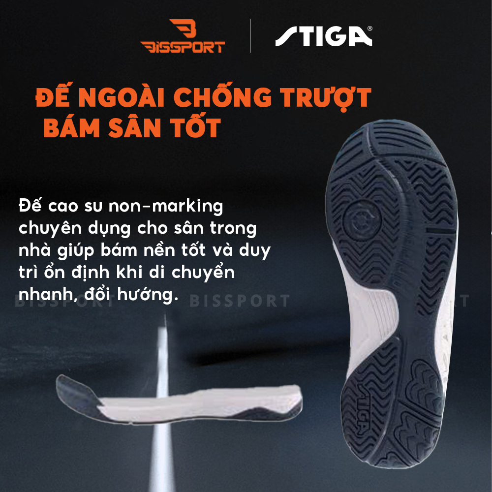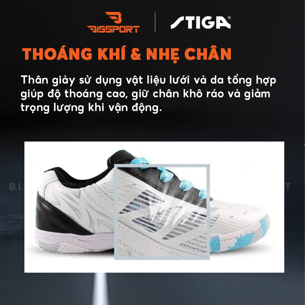 Giày Bóng Bàn STIGA CS-S5A22 Trắng Xám – Nhẹ – Bám Sàn – Ổn Định Chuẩn Thi Đấu