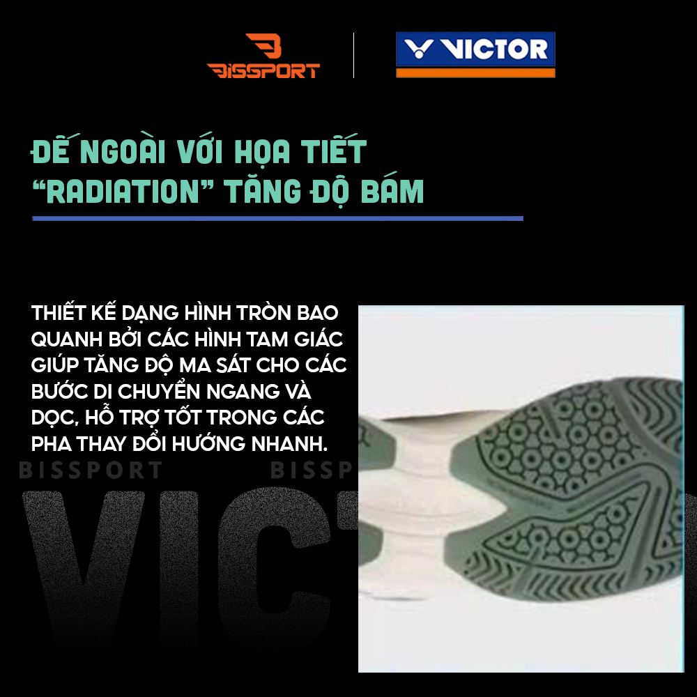 Công nghệ hấp thu lực độc quyền của Victor giúp giảm chấn hiệu quả, hoàn trả năng lượng nhanh, hỗ trợ bước di chuyển nhẹ nhàng và bứt tốc linh hoạt hơn.