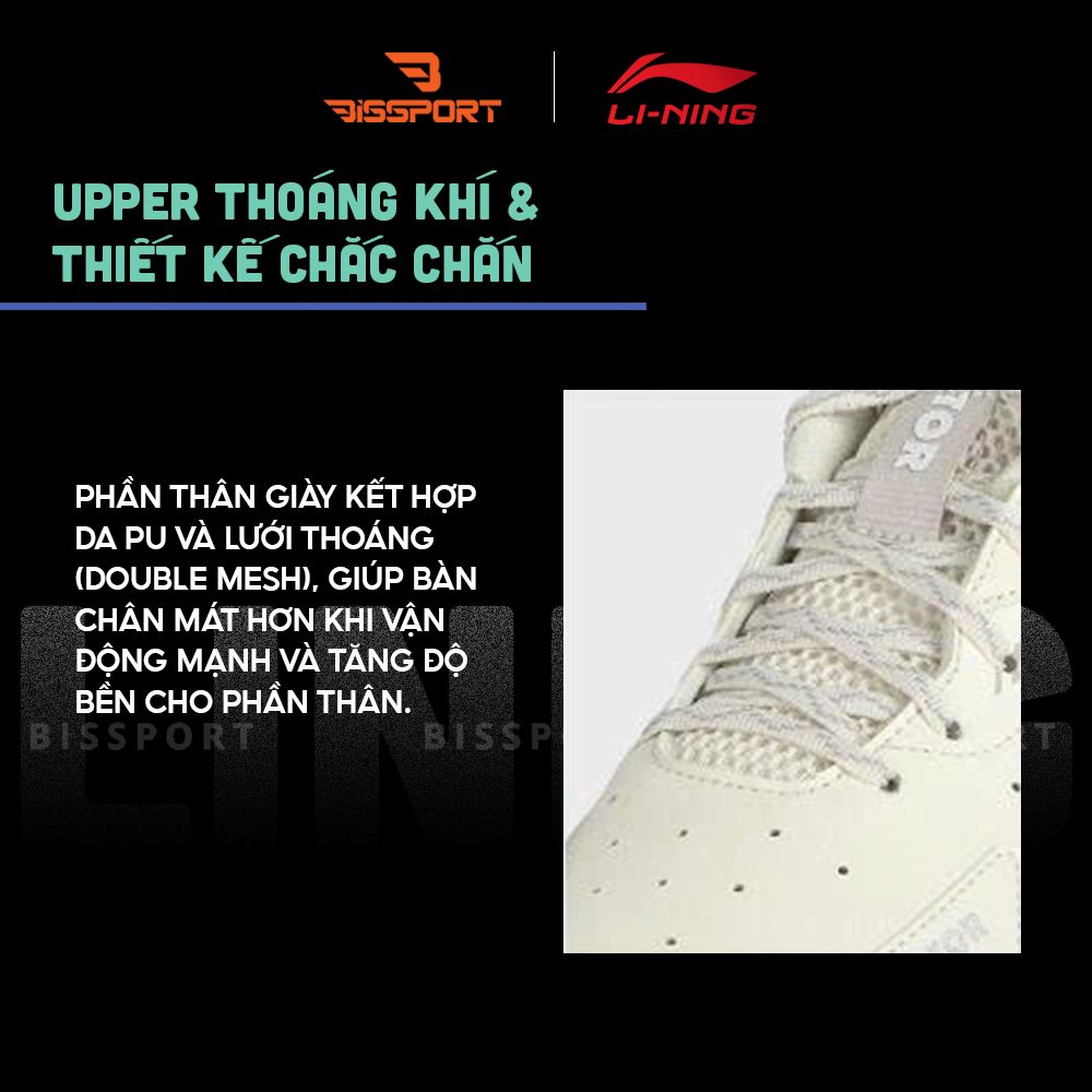 Phần thân giày làm từ da PU cao cấp cho cảm giác chắc chắn, bền bỉ và giữ form cực tốt theo thời gian. Xen kẽ với đó là lớp lưới mesh thoáng khí – giúp đôi chân luôn khô ráo, dễ chịu ngay cả khi thi đấu trong môi trường nóng hoặc ẩm.