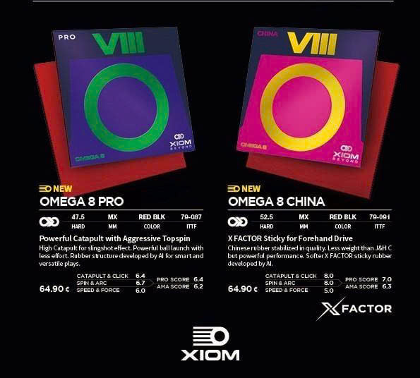 Mặt Vợt Bóng Bàn Xiom Omega 8 Pro – Chính Hãng