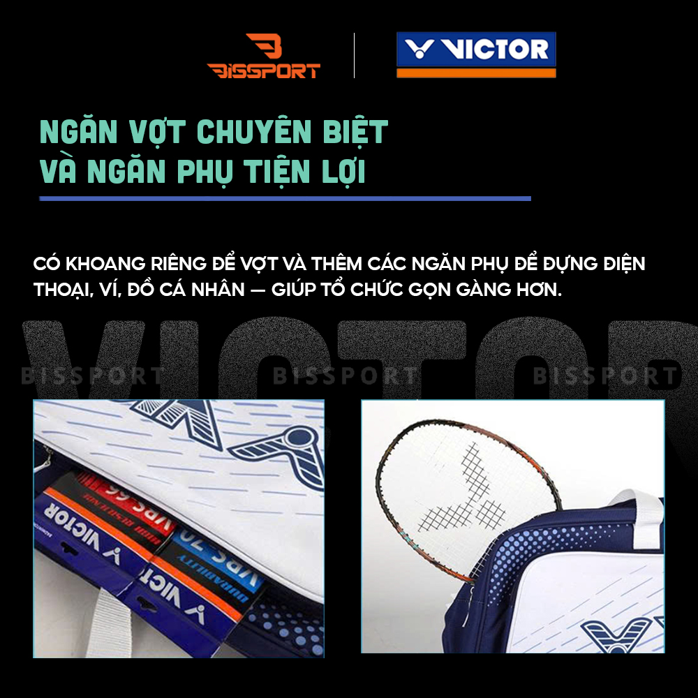 Victor BR2603 sở hữu form túi đứng, gọn gàng nhưng đủ rộng để đựng vợt, quần áo, bình nước, khăn và các phụ kiện khác. Các ngăn được bố trí khoa học, giúp bạn dễ dàng sắp xếp và thao tác nhanh chóng, tránh mất thời gian khi cần lấy đồ trong buổi tập hay thi đấu.