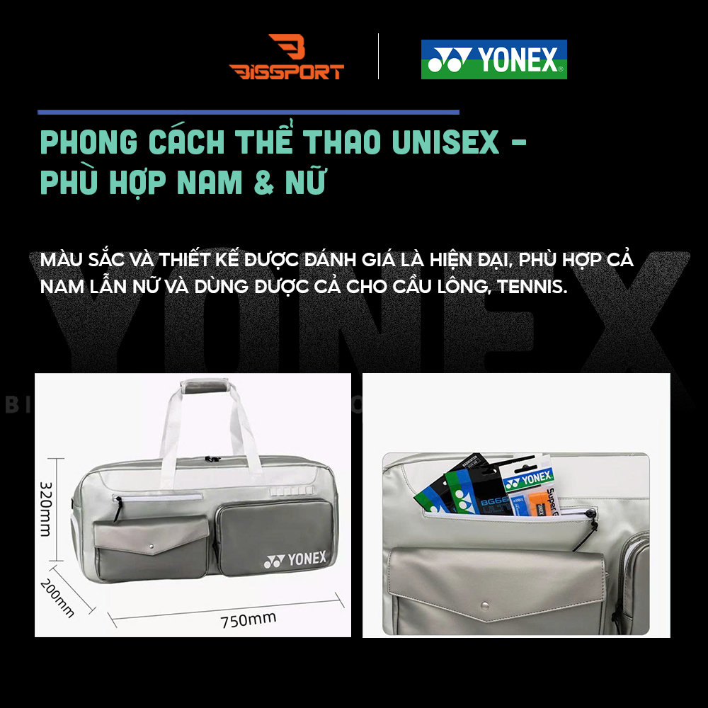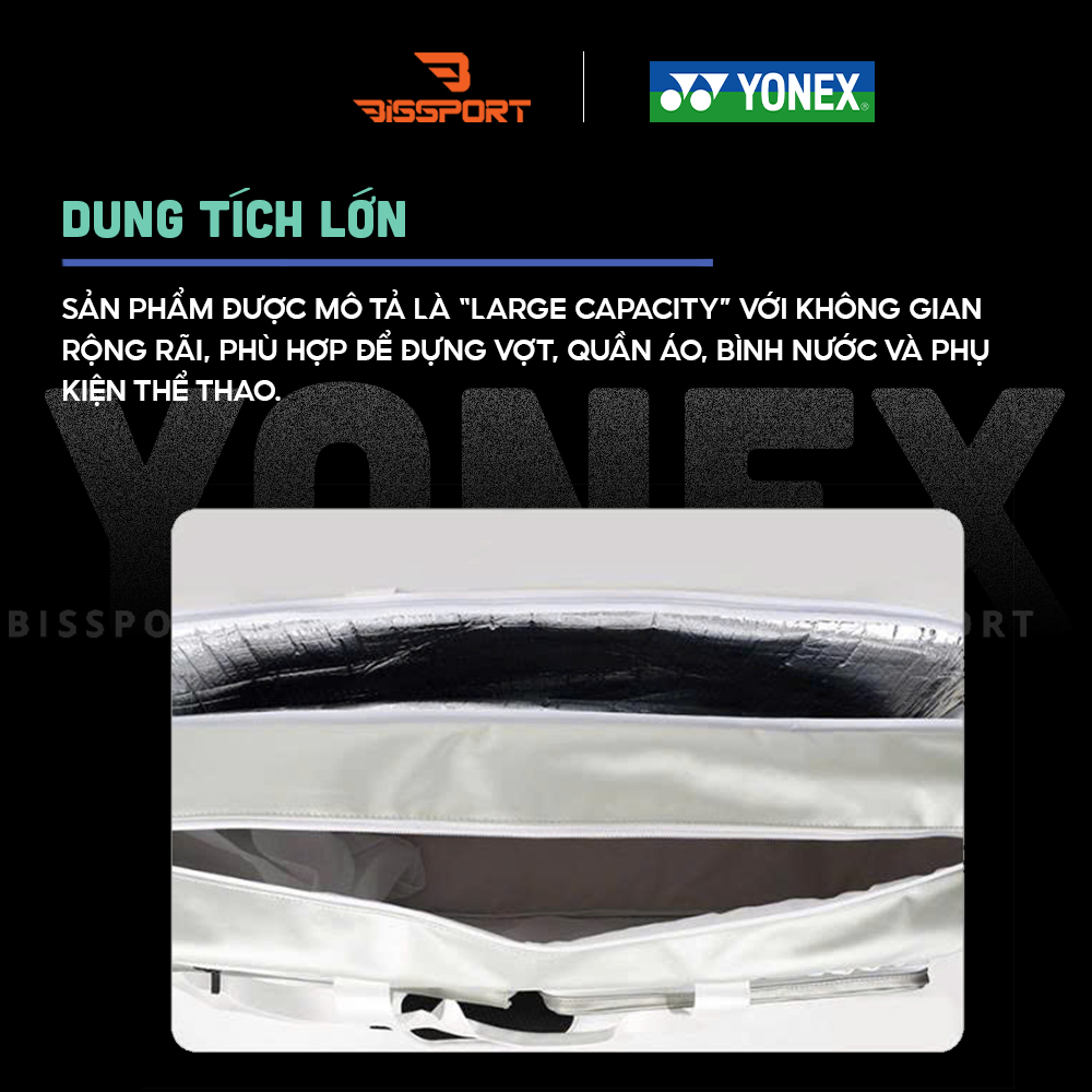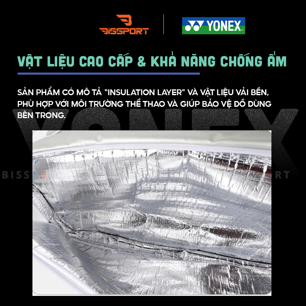 Chiếc túi mang tinh thần thể thao hiện đại pha nét thanh lịch Nhật Bản, nổi bật với tông xanh mint tươi mát, vừa trẻ trung vừa sang trọng. Logo Yonex được in nổi sắc nét, khẳng định đẳng cấp thương hiệu đã đồng hành cùng biết bao tay vợt hàng đầu thế giới.