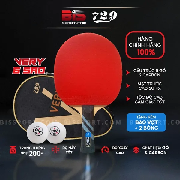 Vợt Bóng Bàn Dán Sẵn 729 6 Sao
